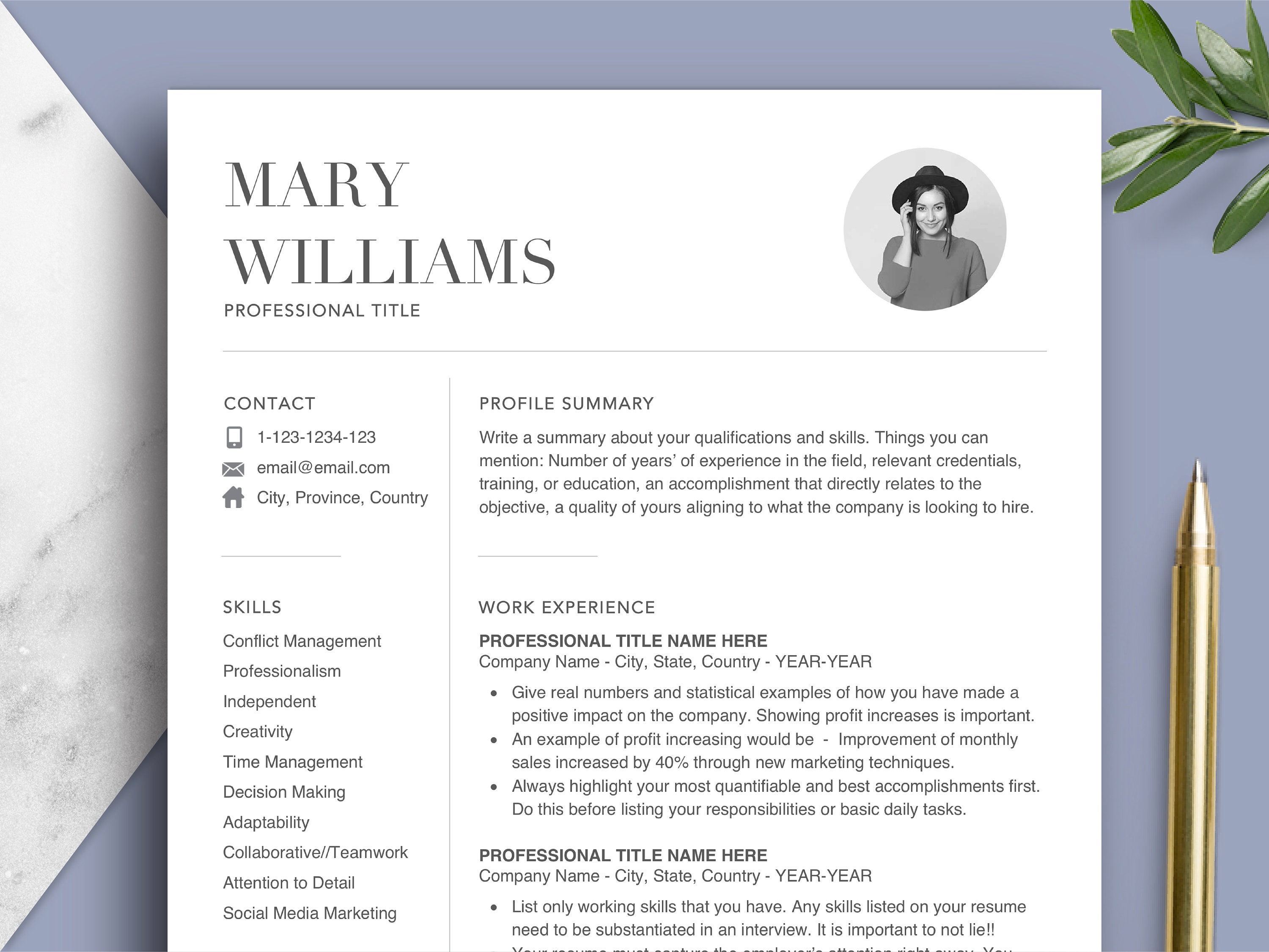 Resume Cv With Photo Professional Resume Profile Picture Etsy India